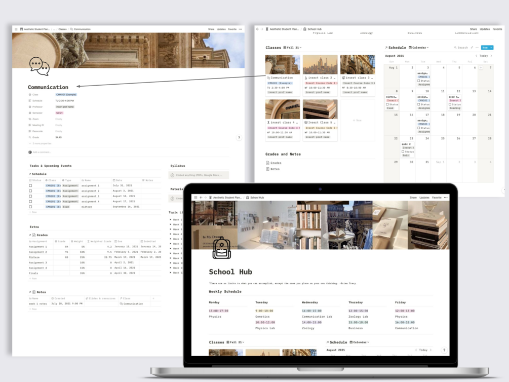 Aesthetic Student Notion Planner | Academic Notion Template | Assignment Tracker | Project & Essay Planner for Computer, Tablet and SmartPhone